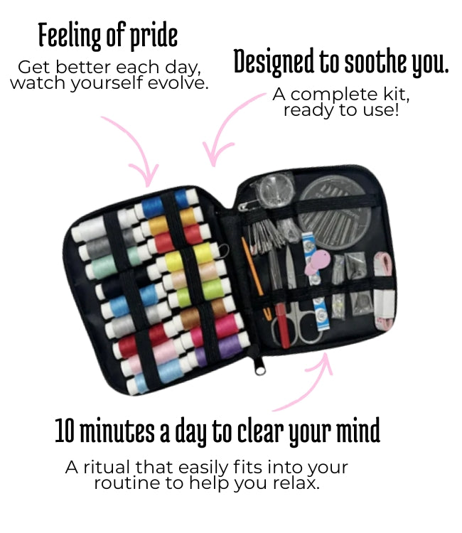 "After work, I used to struggle to switch off… now I grab my little kit, sit down, do a few stitches, and I finally feel like I’m really breathing for the first time all day. What I love most is the real calm this activity brings to my mind!"